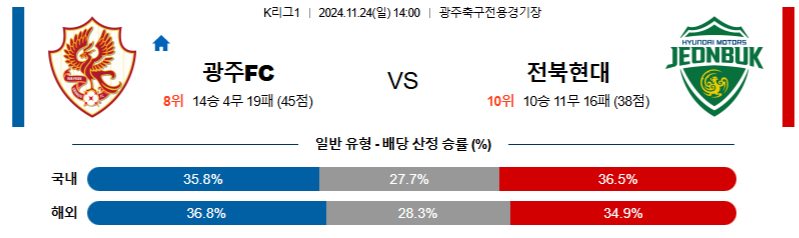 - 광주의 조직력과 전북의 원정 약세가 경기의 중요한 변수로 작용할 것이며, 홈 경기에서 광주의 압도적인 경기력이 전북의 수비를 무너뜨릴 가능성이 큽니다.